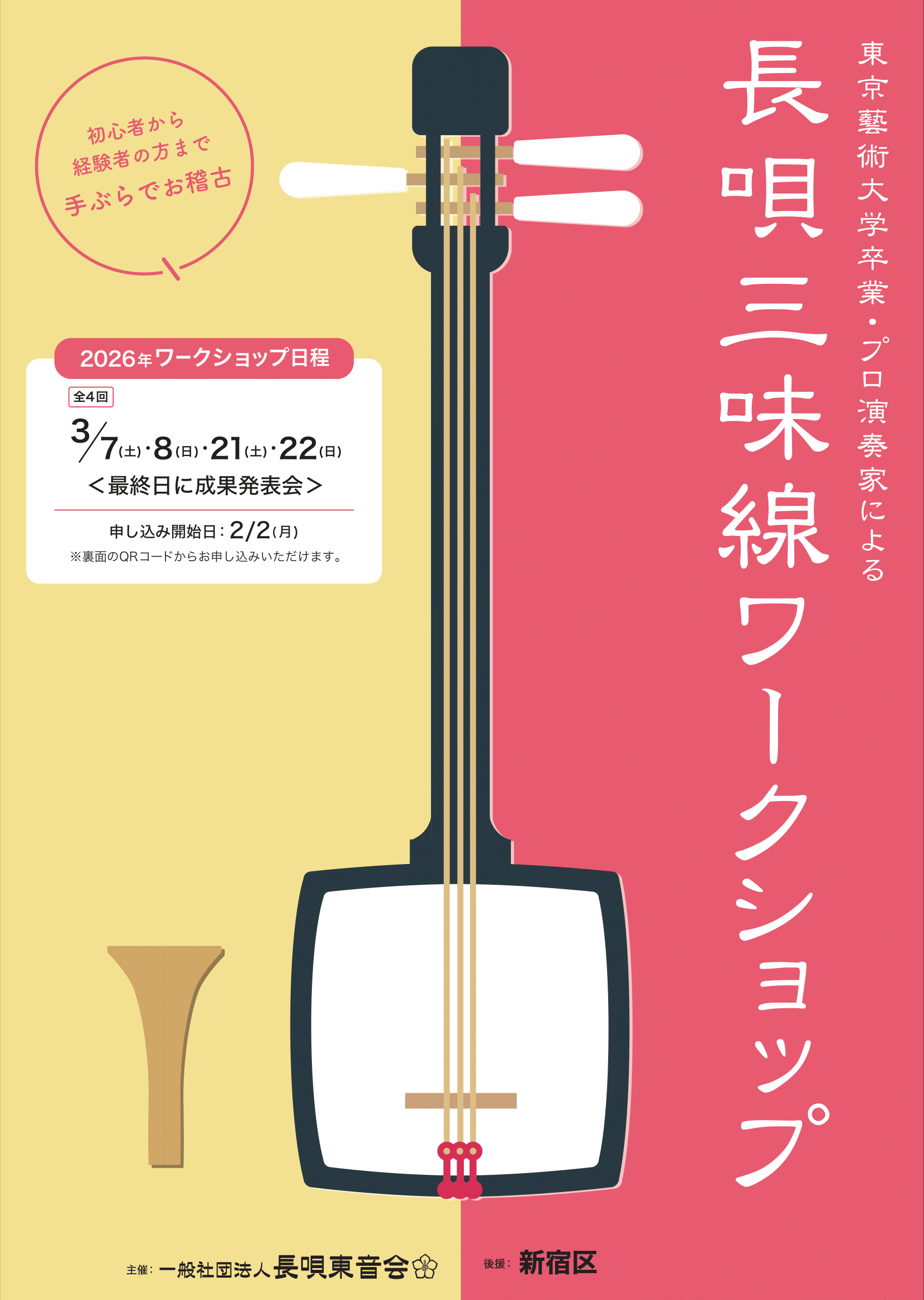 •高音三味線 •低音三味線 •曲に合わせた音色の違いなど、普段触れない楽器の魅力を紹介します。